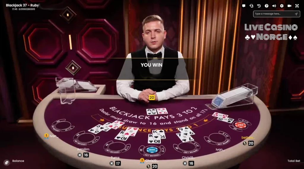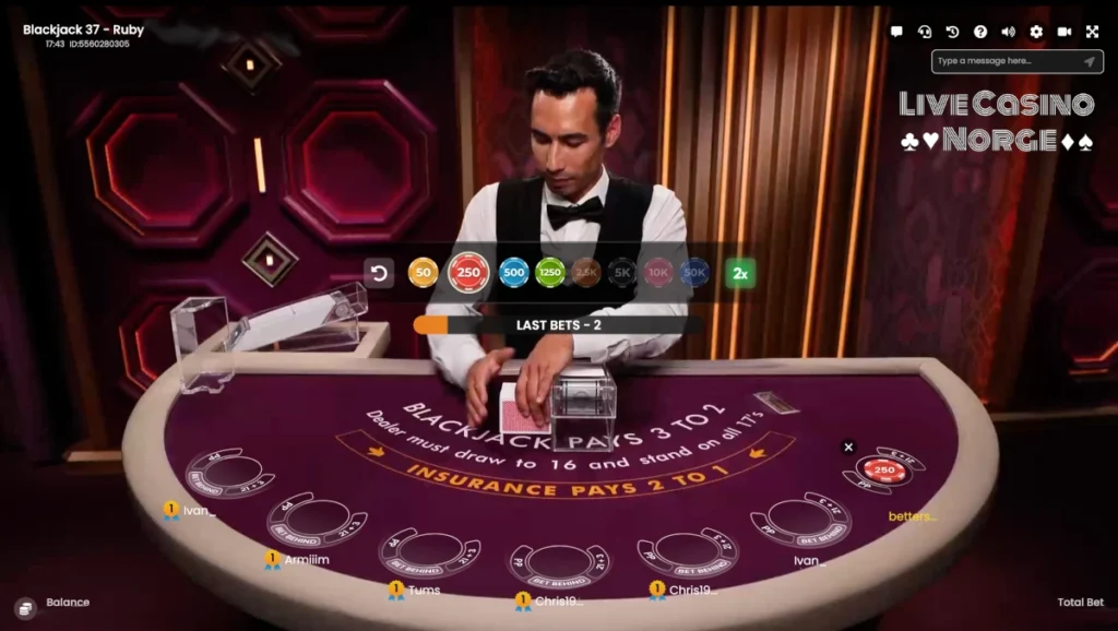 Live dealer-spill som Blackjack Ruby tilbyr den unike fordelen av å kunne observere andre spillere og dealeren gjennom alternativet Bet Behind. Selv om blackjack først og fremst er et spill med individuelle avgjørelser, kan det å observere andre gi verdifull innsikt og hjelpe deg med å tilpasse strategien din deretter.