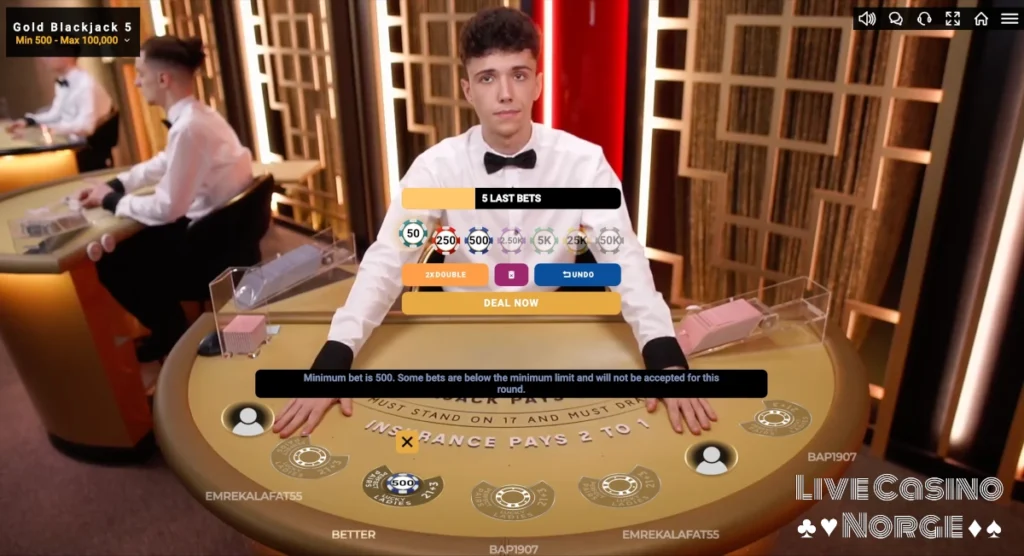 Norske Live Casino med Gold Blackjack