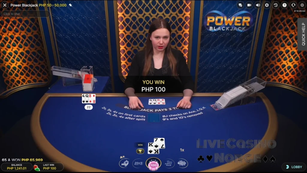 Power Blackjack er en drøm for highstakes-spillere, siden det gir en forfriskende og givende opplevelse. Spillets tradisjonelle blackjack-røtter blandet med innovative funksjoner er et bevis på Evolution Gamings forpliktelse til å revolusjonere livekasinoområdet.