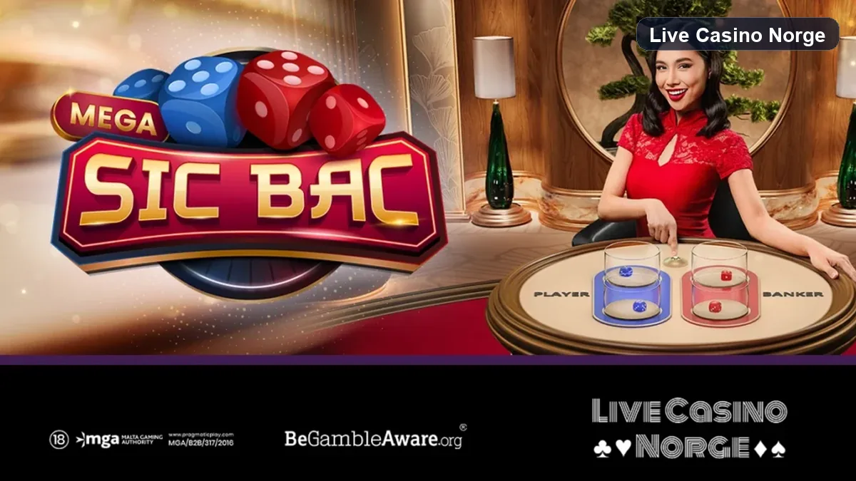 Mega Sic Bac fra Pragmatic Play Live er et raskt live terningspill med fire terninger, Player- og Banker-utfall, 21 sideinnsatser og mulige Mega-forsterkede utbetalinger.
