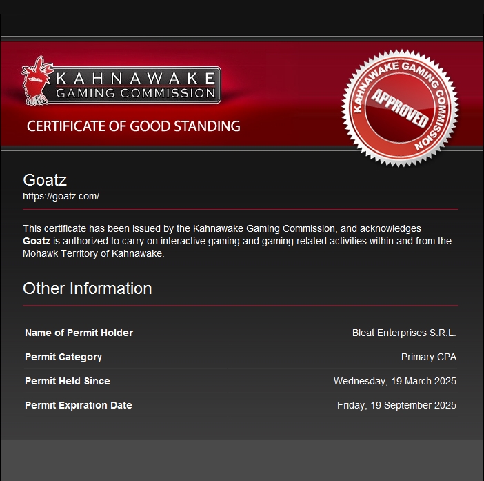 Lisensen ble utstedt i mars 2025 under Client Provider Authorization No. 993, og gir Goatz rett til å tilby nettcasino til spillere i en rekke markeder.