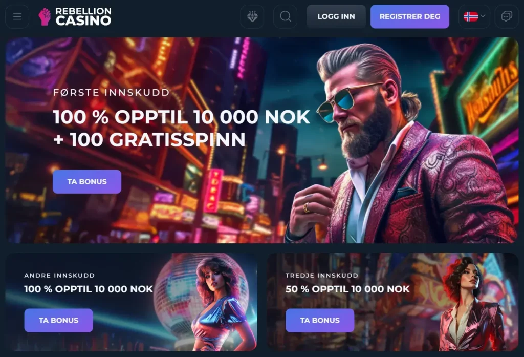 Pluss, med jevnlige bonuser spesielt for live casino spillere, blir det alltid litt ekstra moro og flere grunner til å spille hos Rebellion. Opplev spenningen selv og se hvorfor så mange velger Rebellion som sitt go-to sted for live casino action.