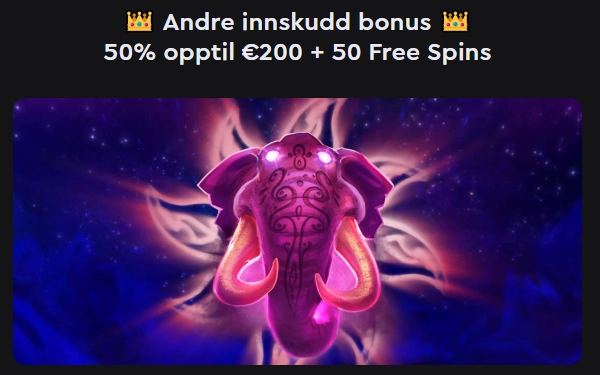 Som storspiller får du en bonus på 50 % opp til 2 000 kr med et minimumsinnskudd på 1 000 kr. Omsetningskravet er 40x på bonuspengene.