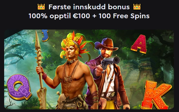 Få 100% bonus opptil €100 + 100 gratisspinn på John Hunter and the Mayan Gods.