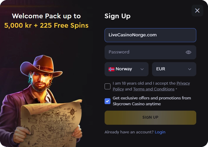 Det er enkelt å lage en konto hos SkyCrown Casino, så bare følg trinnene her: