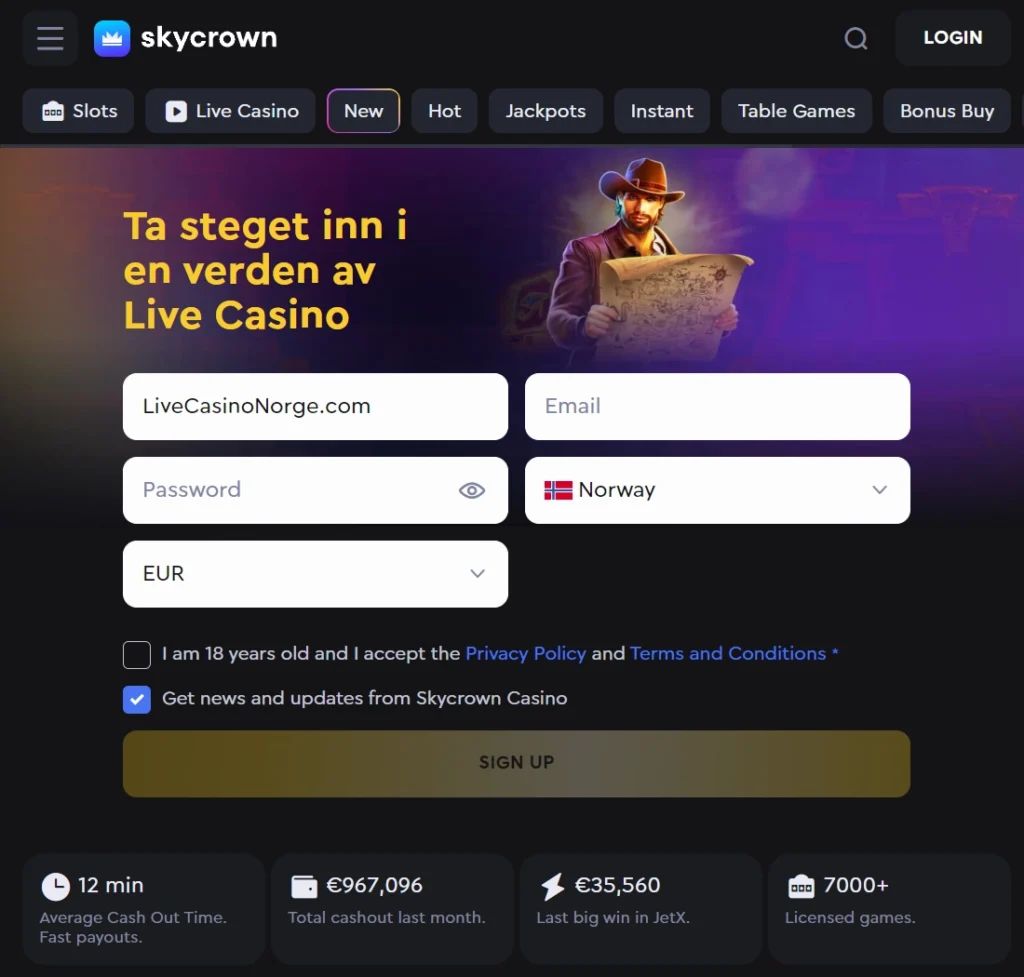 For å hente ut gevinstene dine fra live casino hos SkyCrown, er prosessen enkel og grei for store beløp i hundretusenkronersklassen; du kan bruke bankoverføring, kryptovaluta eller MiFinity. For virkelig enorme gevinster, tenk millionklassen, vil utbetalingene håndteres på en annen måte for å sikre maksimal sikkerhet, inkludert gjennomføring av ytterligere KYC-prosedyrer.