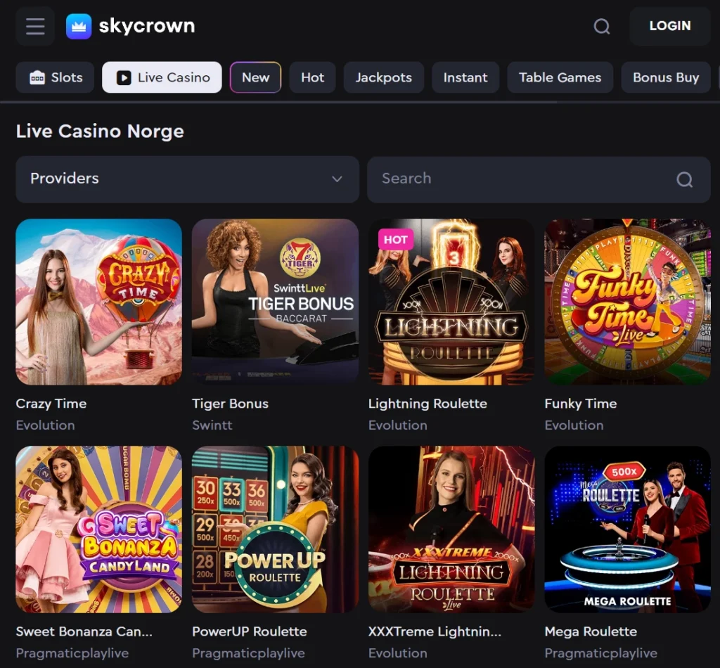 Dette er stedet for deg som elsker spenningen av live spill, men du vil også finne et bredt spekter av andre casinospill for å sikre en variert og fullstendig spill-opplevelse. La SkyCrown bli ditt foretrukne valg for førsteklasses underholdning og store vinnermuligheter.