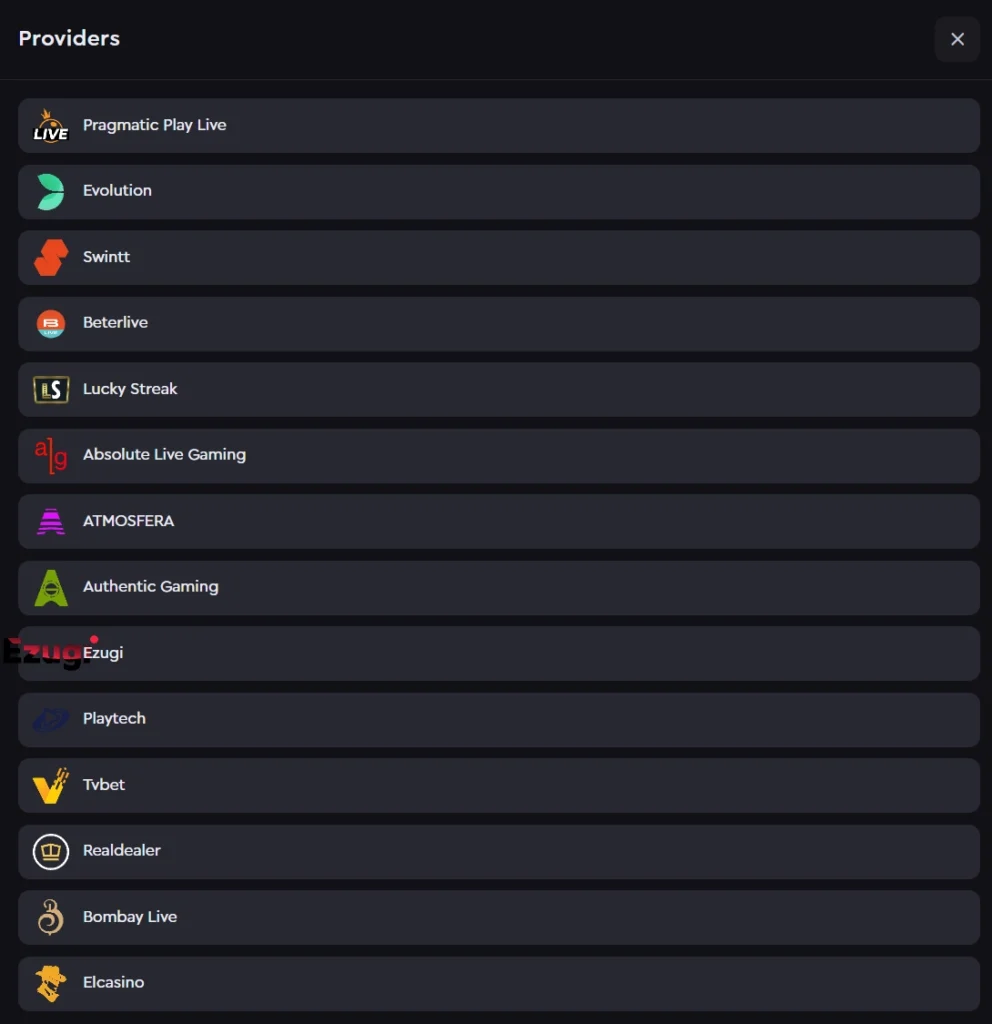 | 500+ | 14 totalt: Pragmatic Play Live, Evolution, Swintt Live, BeterLive, Lucky Streak, Absolute Live Gaming, ATMOSFERA, Authentic Gaming, Ezugi, Playtech Live, TVbet, Real Dealer, Bombay Live, ElCasino |