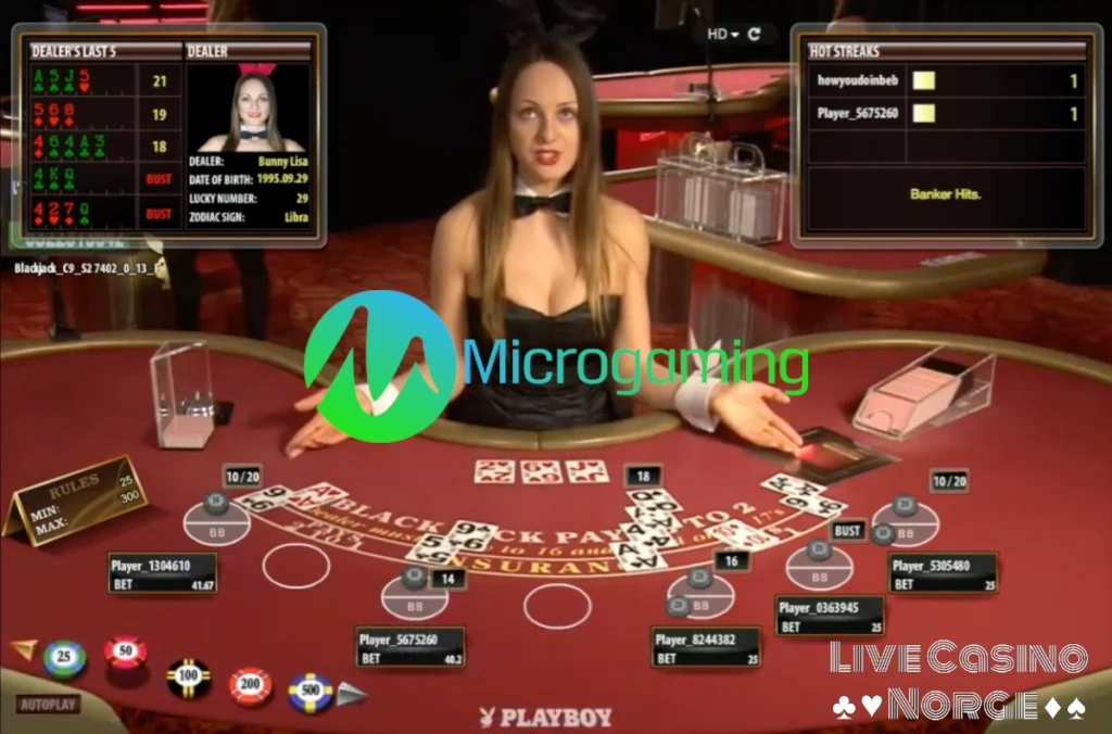 Playboy Blackjack fra Microgaming ble lansert i februar 2013 og er en mer sexy versjon av deres originale Live Blackjack-spill fra 2010. RTP 99.6%